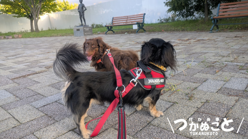 もちろんマーキングなんてこともしますがブラザーズなので片足上げて「のえる」上げると続けて「びすけっと」も上げたりします、家を出るときに駐車場でオシッコとウンチは済ませてくるのでほとんど出てないんですけどねぇ~